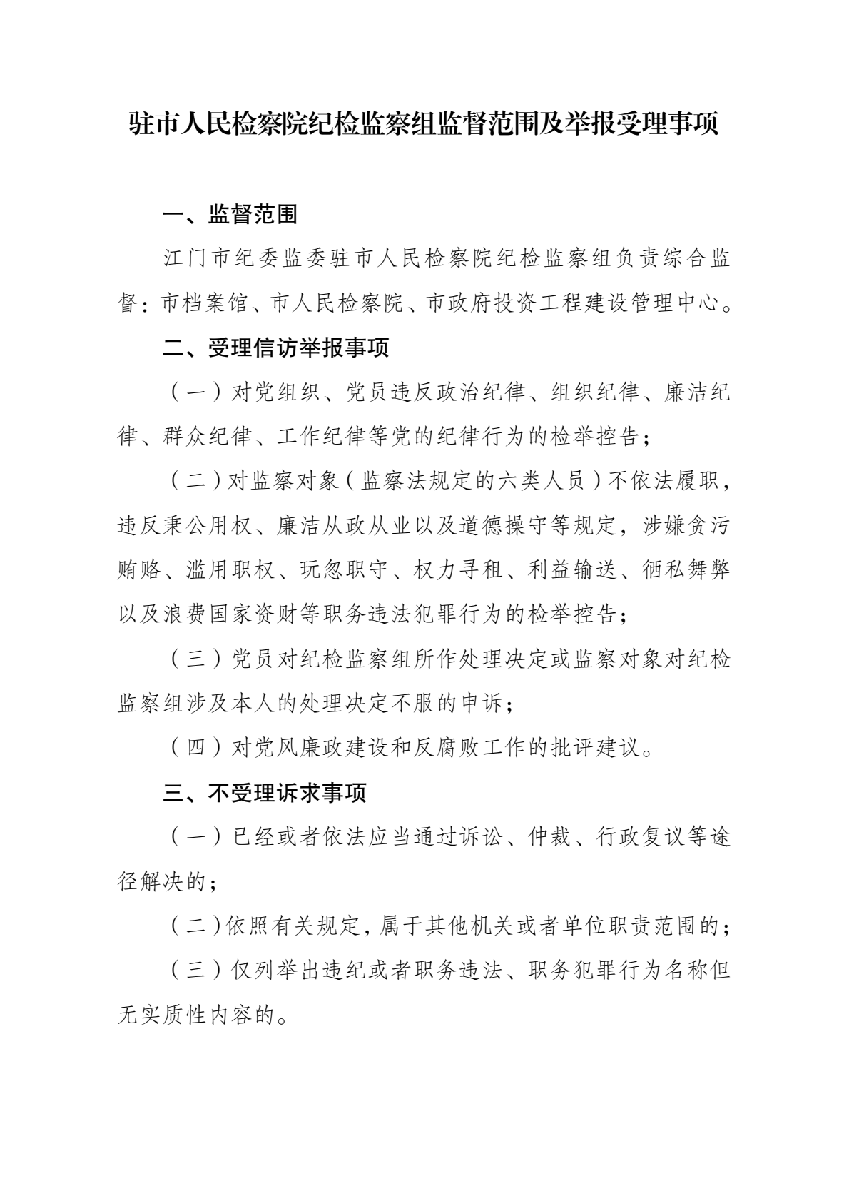 驻市人民检察院纪检监察组监督范围及举报受理事项